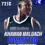 Duke men’s basketball head coach Jon Scheyer officially announced the addition of Khaman Maluach to the Blue Devils’ 2024 recruiting class on Wednesday. Maluach initially committed on March 6. Maluach, a 7-foot-2, 250-pound center from the NBA Academy Africa in Senegal, is a five-star recruit ranked as the third overall prospect and top center by 247Sports. He is the fifth … [Read more...] about Five-star center Khaman Maluach officially signs with Duke