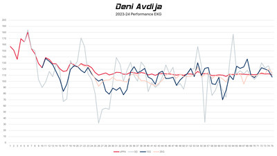 - The chart indicates that Avdija was at his best early in the season, went through a rough patch and then stabilized.