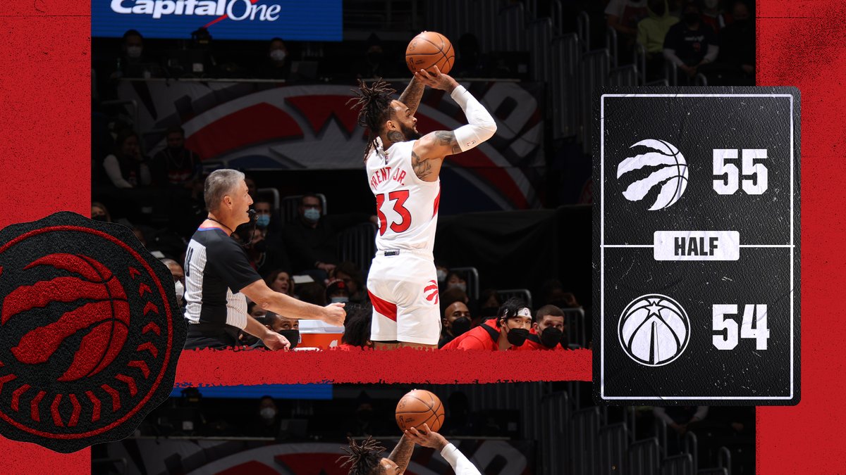 Raptors lead 55-54 after a half. I’m sure there’s a reason Daniel Gafford played the first 6:26 and didn’t return for the Wizards, but I can’t think of it. – 9:01 PM