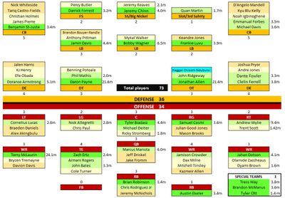 As things stand at the moment, the team has 73 players on the roster. There are 36 players on defense, 34 on offense, and 3 special teams specialists.