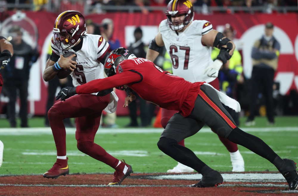 The Washington Commanders defeated the Tampa Bay Buccaneers 23-20 in the NFC wild-card round. Rookie quarterback Jayden Daniels completed 24 of 35 passes for 268 yards and two touchdowns, leading the Commanders to their first playoff win in 19 years.