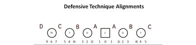 The letters are the GAPs, and the numbers are the techniques. In this article, I want to focus on the 6-technique lined up directly over the tight end.